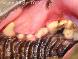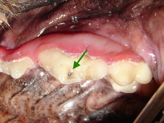 Broken or fractured teeth are very common in dogs and cats. The most common causes of broken teeth are abnormal chewing and biting behaviors (chewing on rocks, cow hooves, animal bones, hard nylon toys, ice cubes, etc), trauma (hit-by-car, falling, etc), and rough play. The most commonly affected teeth are incisors, canine teeth and upper fourth premolar teeth. Common signs of tooth fractures and resultant endodontic disease include drooling more than usual, pawing at face, rubbing face on carpet or eating on the other side of the mouth. Other less common signs are teary eyes, greater tartar buildup on one side of the mouth, a gray or purple discoloration of a tooth, and sneezing.