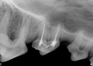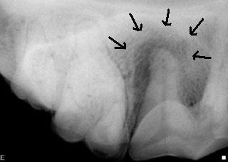 Dental radiographs of the dog on the left revealed a tooth fracture and root abscess associated with upper fourth premolar tooth.
