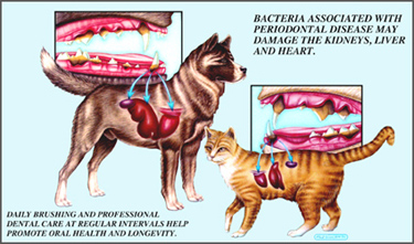 Periodontal disease can cause infections in the kidneys, liver, heart, joints and other distant sites in your pet’s body.