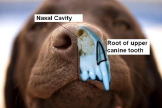 Root of the upper canine tooth is separated from the nasal cavity with a very thin layer of bone which can be destroyed by periodontal disease resulting in communication between the oral and nasal cavities.
